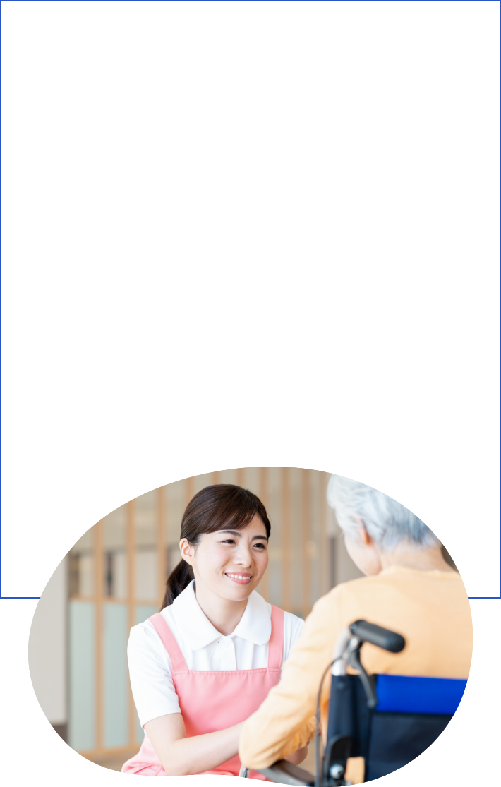 - 今までのご経験を一緒に振り返りながら、 勤務時間・働き方のご希望をお伺いします。 また、「3年後にどうなっていたいですか?」、 「どんな介護をやってみたいですか?」など、 今後のご希望をお聞かせください。 あなたに合わせた働き方を一緒に考えていきましょう。
