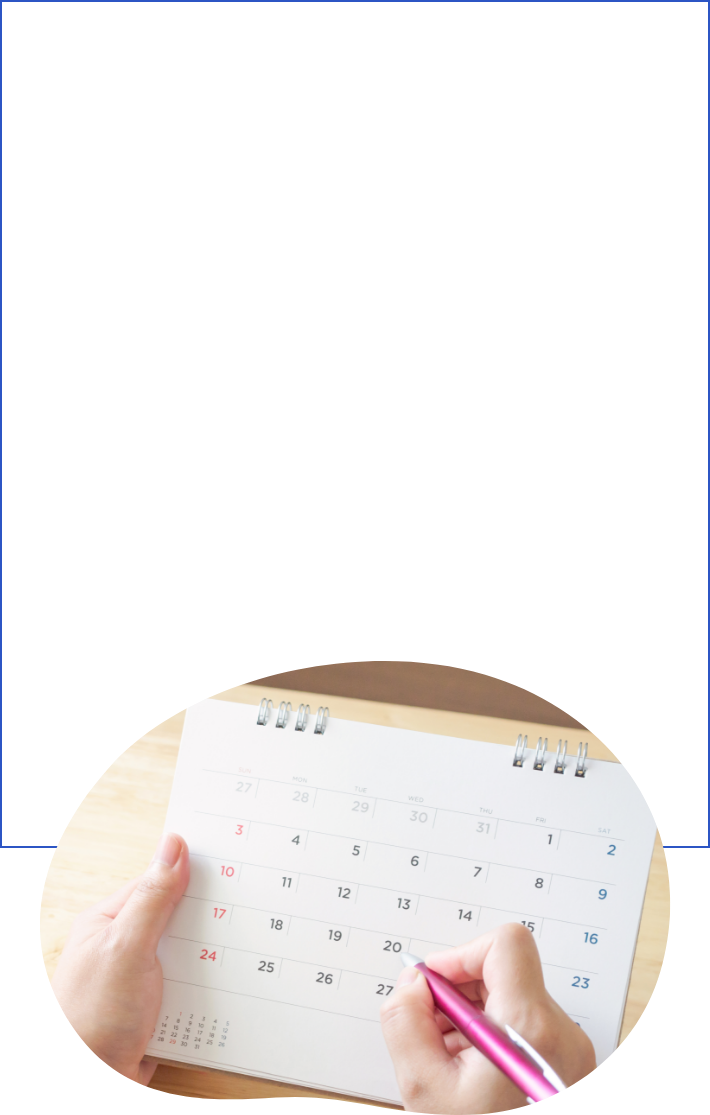 - 基本的には平日及び祝日の日中にお願いしております。